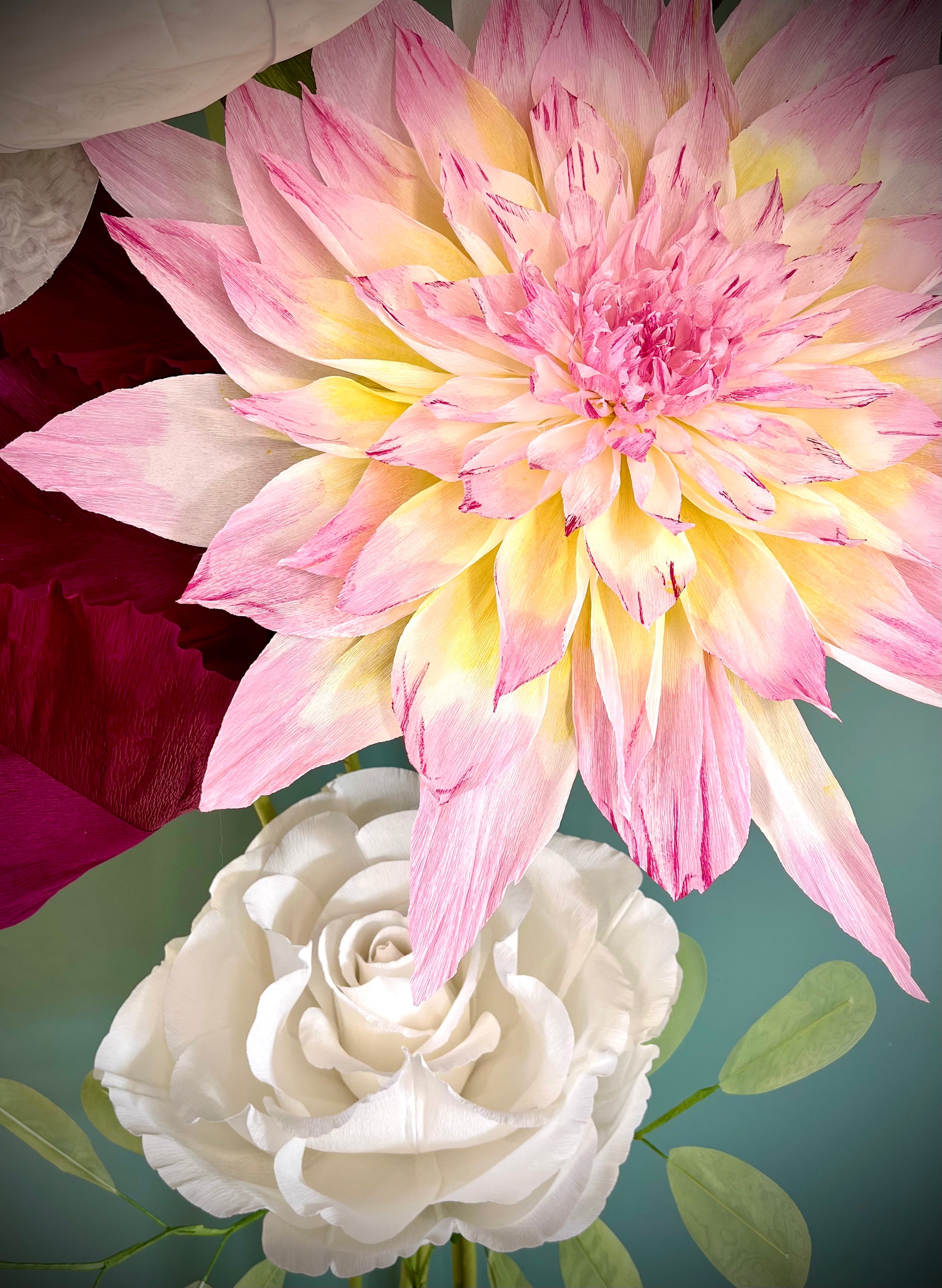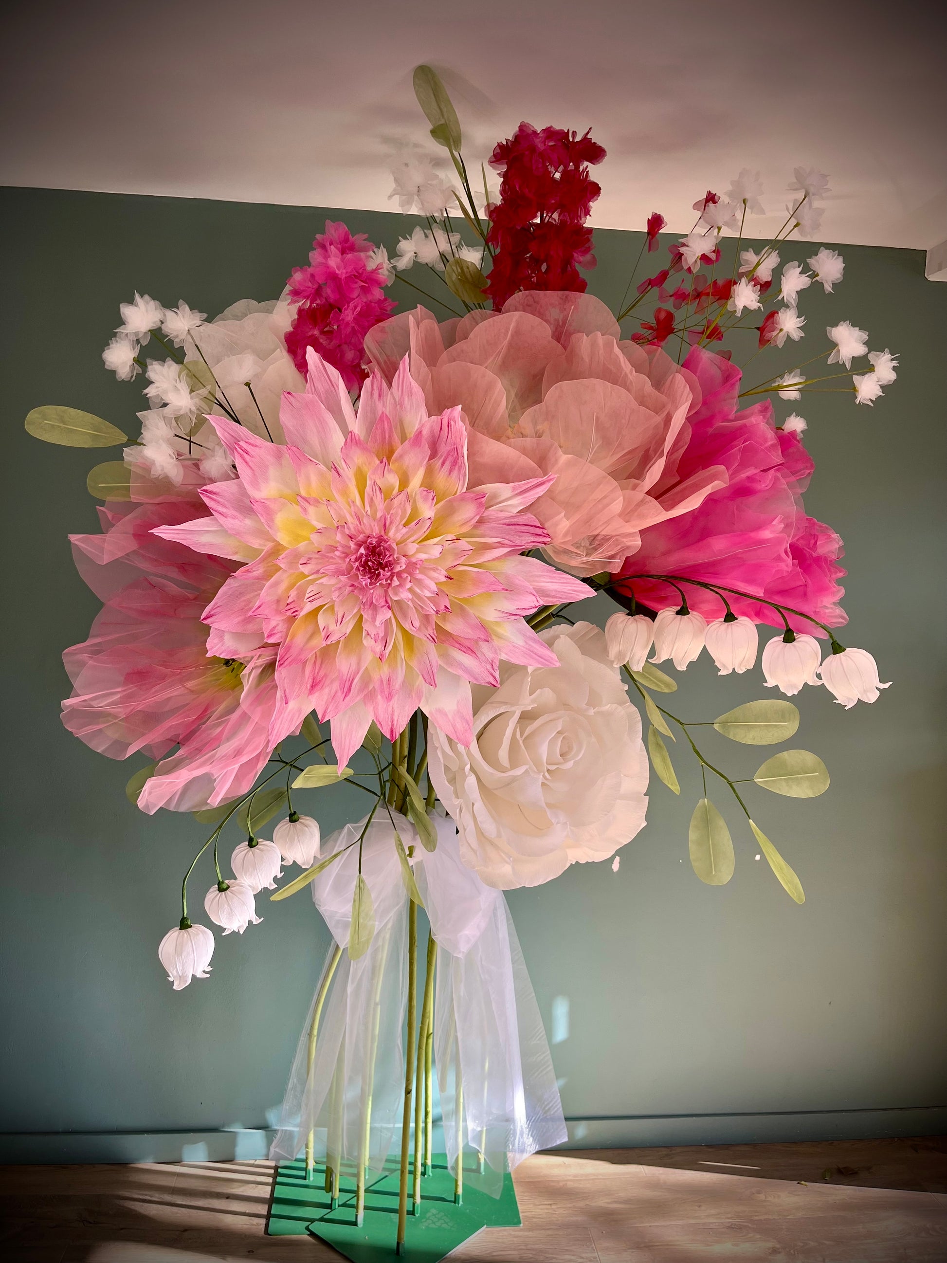 Cet ensemble composé de 7 fleurs géantes est idéal pour habiller de grands espaces lors d'une cérémonie, ou pour habiller de manière sobre et élégante vos vitrines.