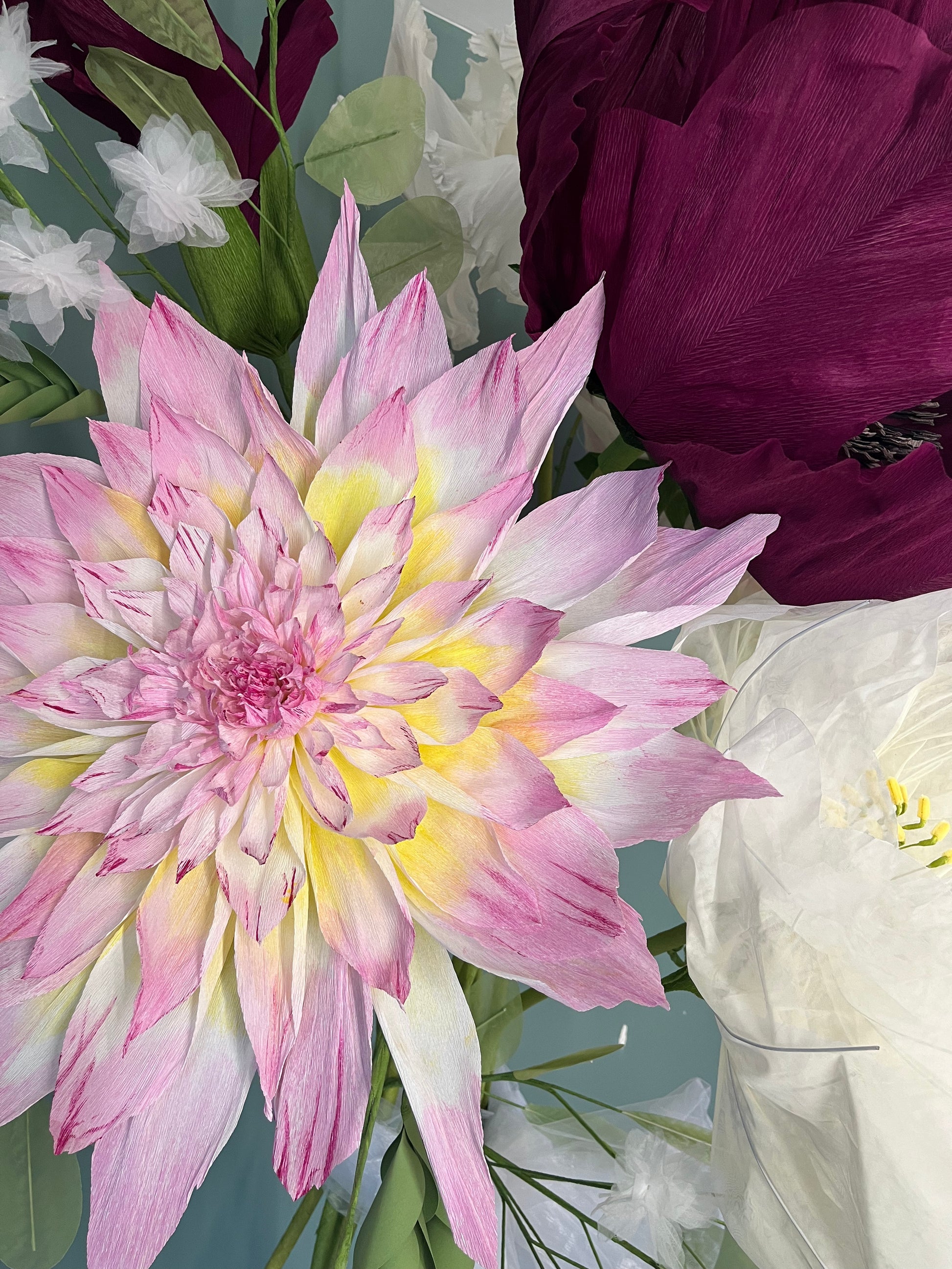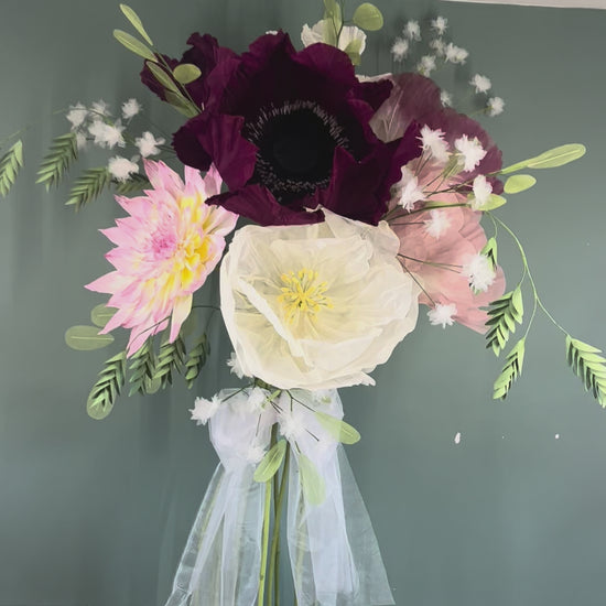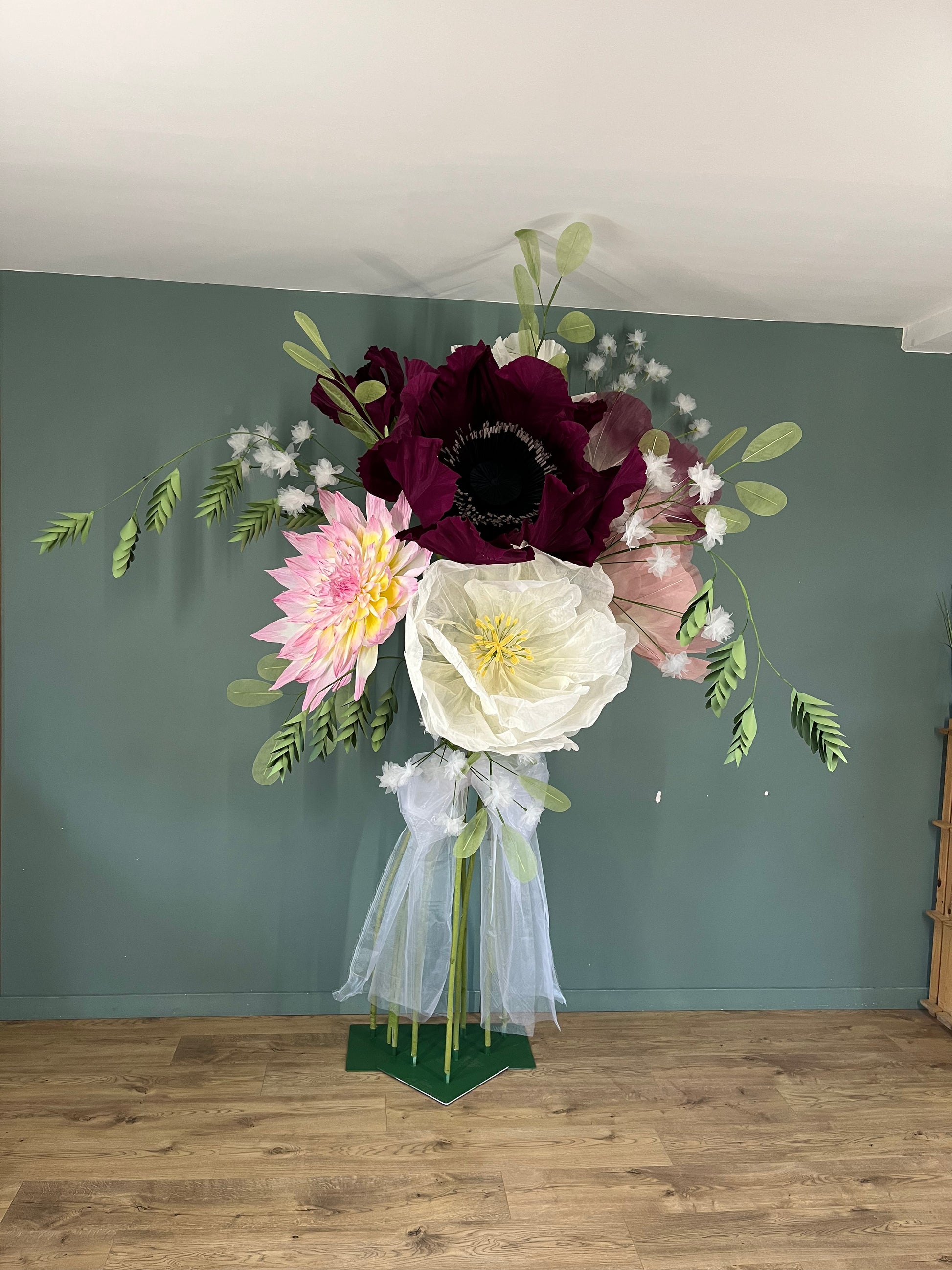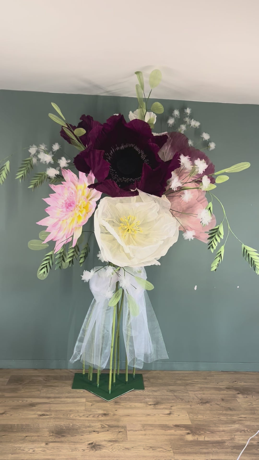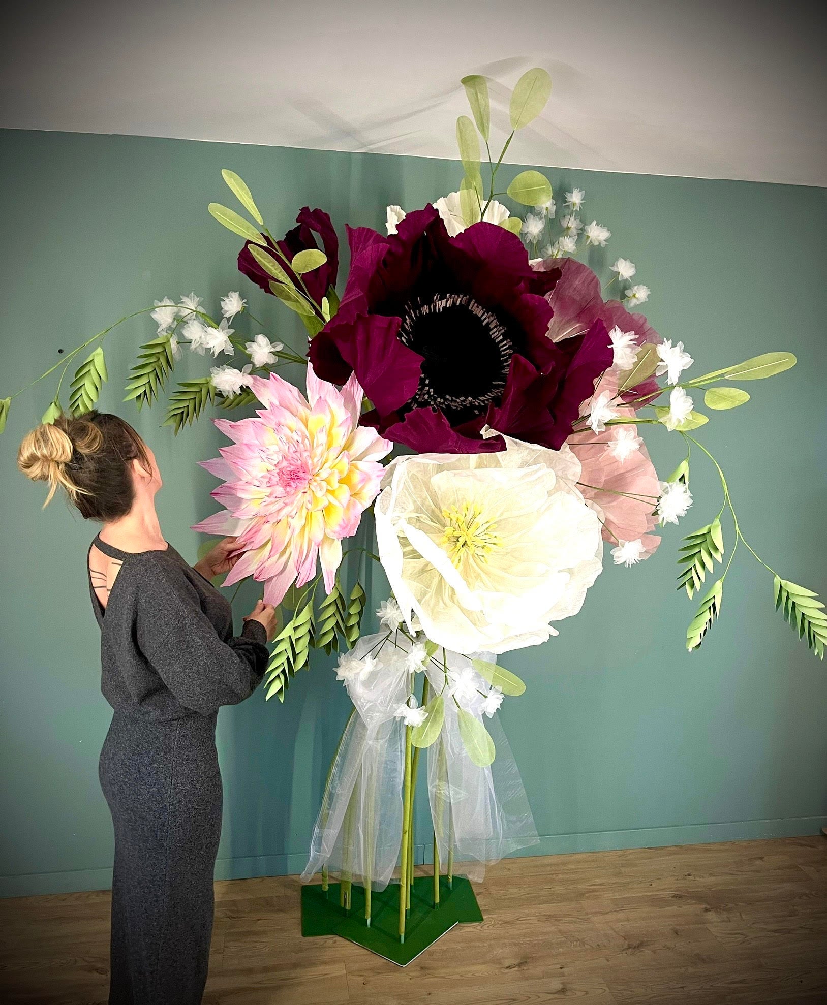 Cet ensemble composé de 7 fleurs géantes est idéal pour habiller de grands espaces lors d'une cérémonie, ou pour habiller de manière sobre et élégante vos vitrines.