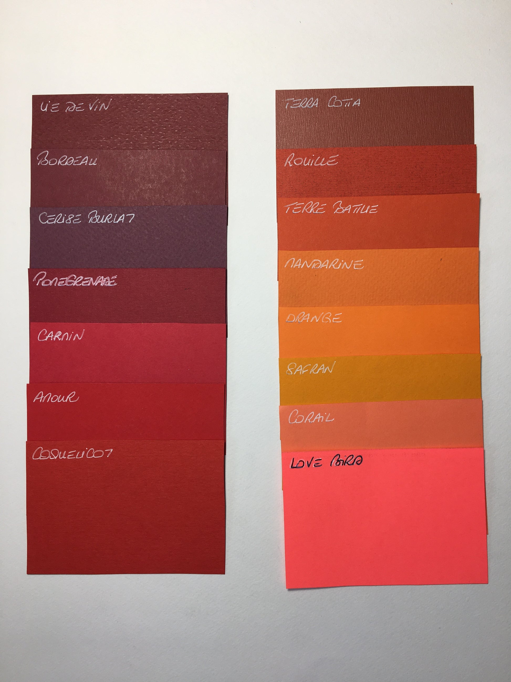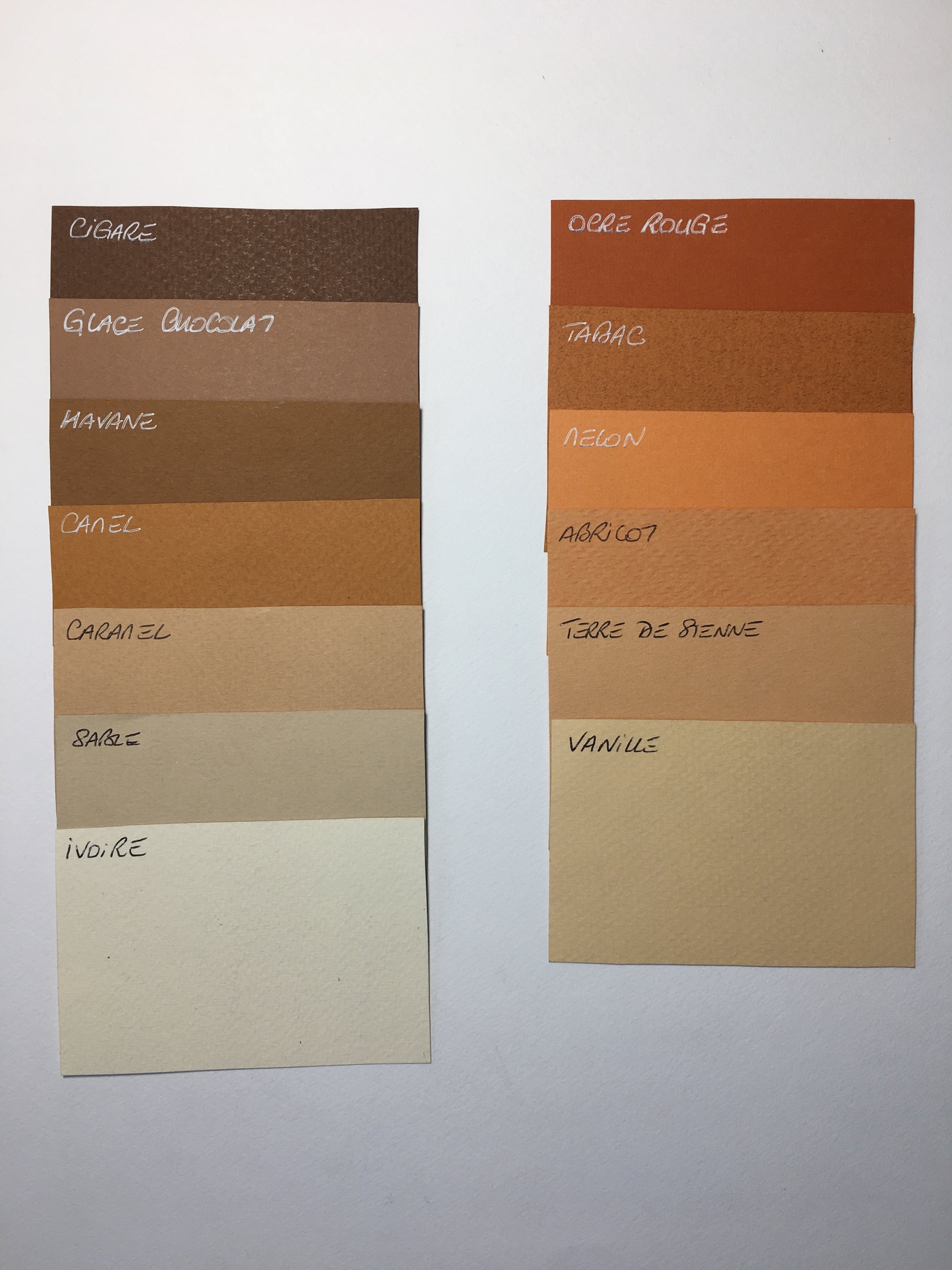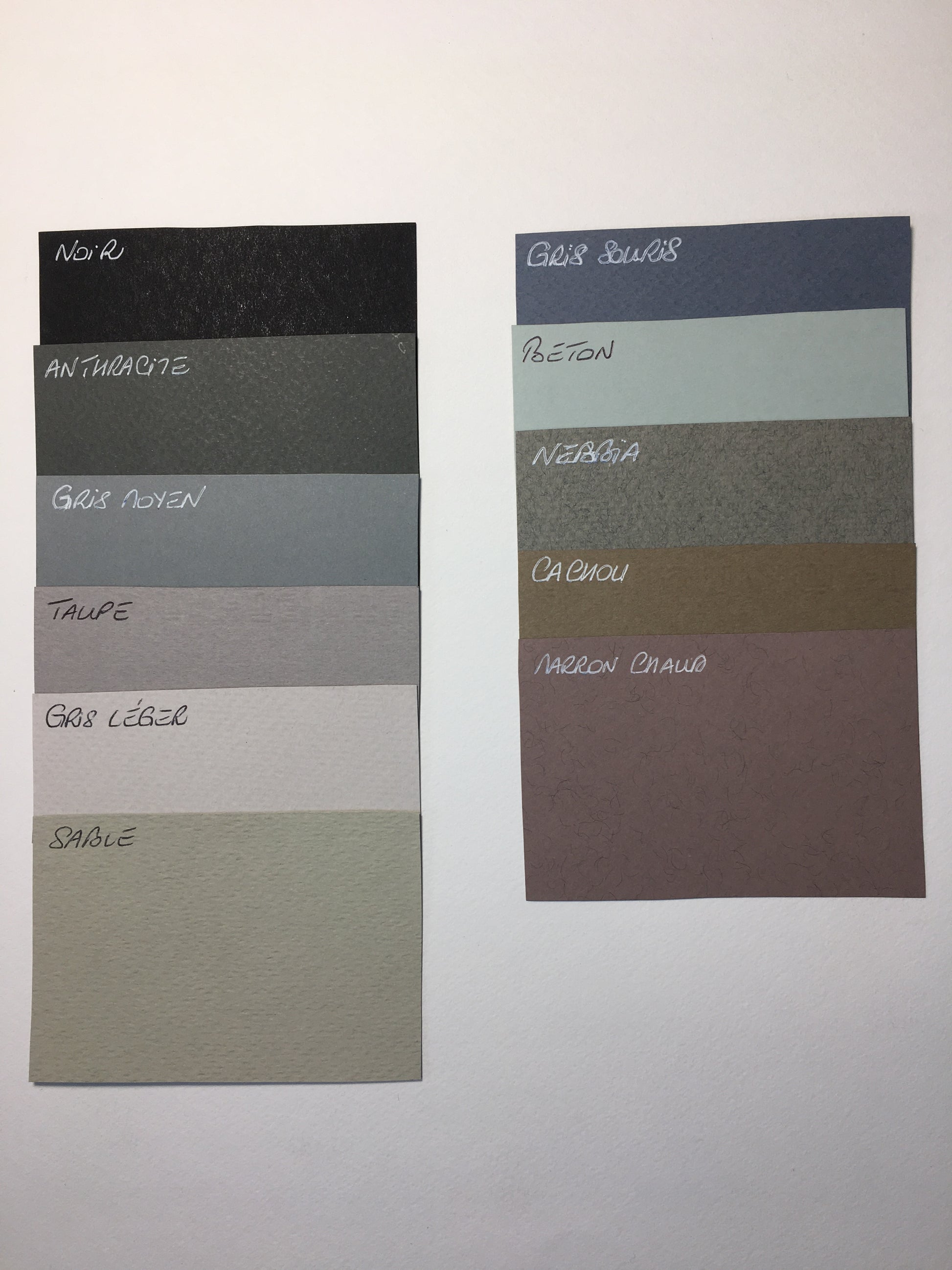 Pour la version terra cotta: gris bleuté, vanille, terra cotta