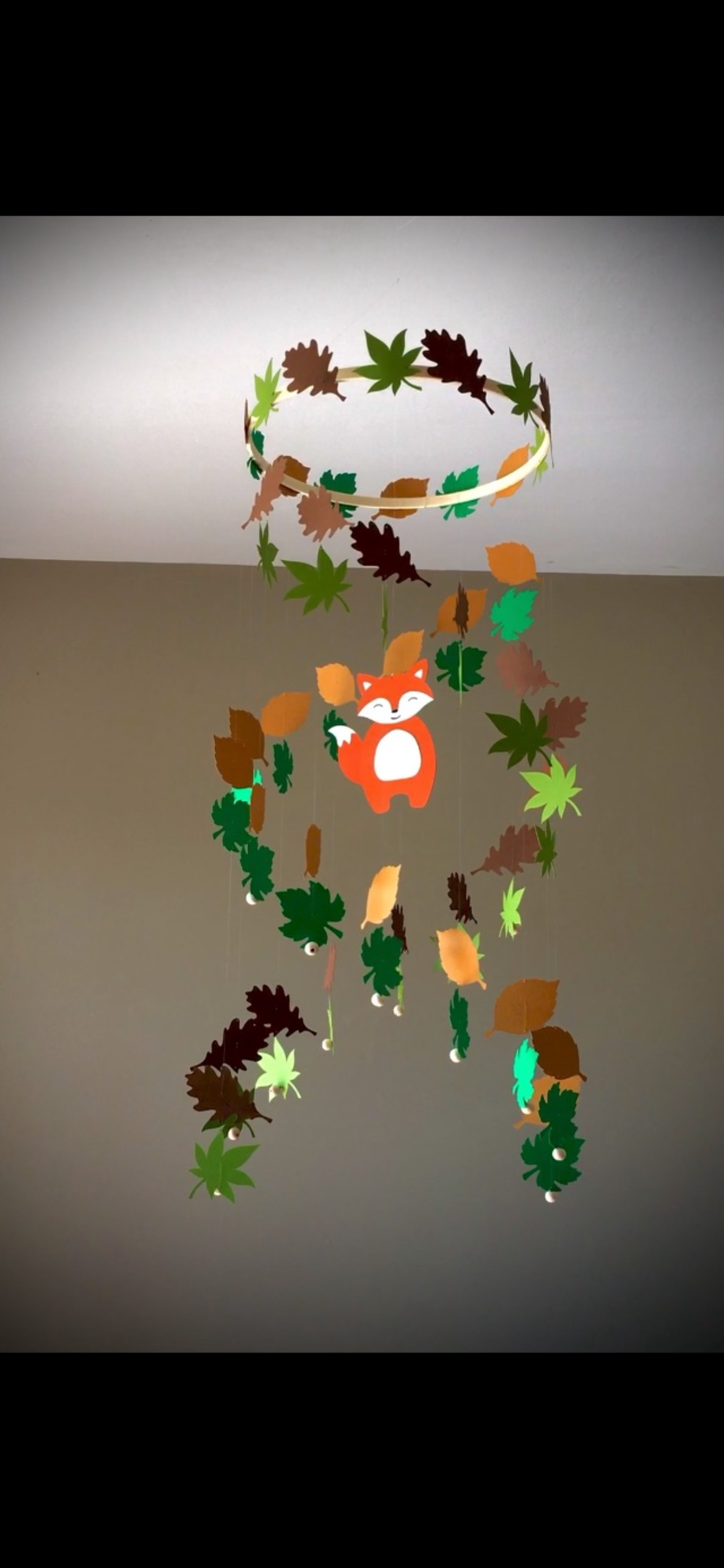 Le cercle à un diamètre d'environ 26 cm. Le mobile à une hauteur d'environ 55 cm.